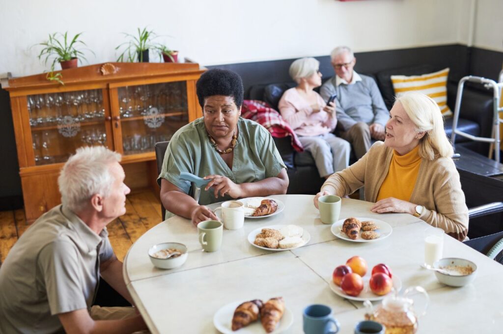 - บ้านพักคนชรามีผู้ดูแลและพยาบาล ซึ่งอาจมีประจำหรือตามความจำเป็น โดยเน้นการดูแลทั่วไปมากกว่าการดูแลทางการแพทย์เฉพาะทาง